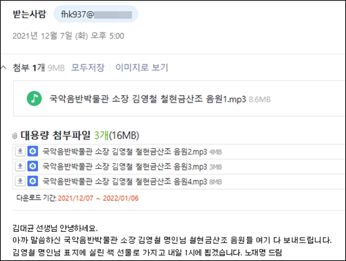 2021³â 12¿ù 7ÀÏ ±è´ë±Õ ¸íÀο¡°Ô ´ÙÀ½°ú °°Àº ±¹¾ÇÀ½¹Ý¹Ú¹°°ü ¼ÒÀå ±è¿µÃ¶ ¸íÀΠöÇö±Ý ¿¬ÁÖ À½¿øÀ» ¹«»ó Á¦°øÇϰí,
