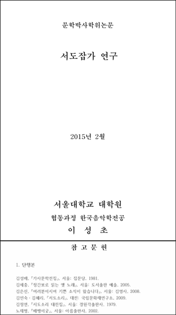 À̼ºÃÊ ³í¹® "¼µµÀâ°¡ ¿¬±¸"(¼¿ï´ëÇб³ ´ëÇпø Çùµ¿°úÁ¤ Çѱ¹À½¾ÇÇÐ Àü°ø ¹®ÇйڻçÇÐÀ§ ³í¹®, 2015³â 2¿ù)¿¡