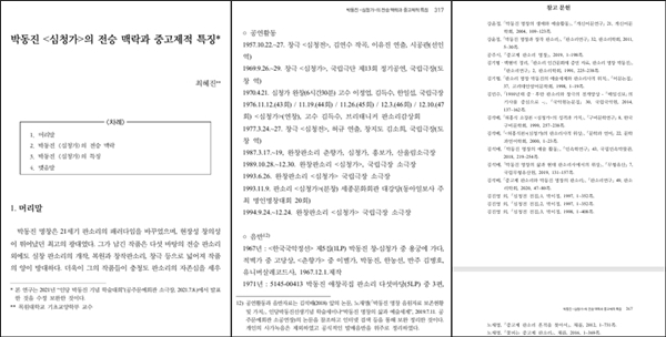 ÃÖÇýÁø ³í¹® "¹Úµ¿Áø <½Éû°¡>ÀÇ Àü½Â ¸Æ¶ô°ú Áß°íÁ¦Àû Ư¡" [ÆÇ¼Ò¸® ¿¬±¸ Á¦52Áý](ÆÇ¼Ò¸®ÇÐȸ, 2021³â 10¿ù) 307~350ÂÊ¿¡ ±¹¾ÇÀ½¹Ý¹Ú¹°°ü ³ëÀç¸í °üÀåÀÇ ´ÙÀ½°ú °°Àº ³í¹®°ú Àú¼µéÀÌ ÀοëµÊ.