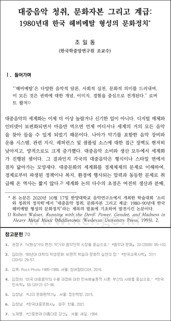 Á¶Àϵ¿ ³í¹® ¡°´ëÁßÀ½¾Ç ûÃë, ¹®ÈÀÚº» ±×¸®°í °è±Þ : 1980³â´ë Çѱ¹ Çìºñ¸ÞÅ» Çü¼ºÀÇ ¹®ÈÁ¤Ä¡¡± [À½¾Ç³í´Ü Á¦46Áý](ÇѾç´ëÇб³ À½¾Ç¿¬±¸¼Ò, 2021³â 10¿ù) 169~204ÂÊ¿¡