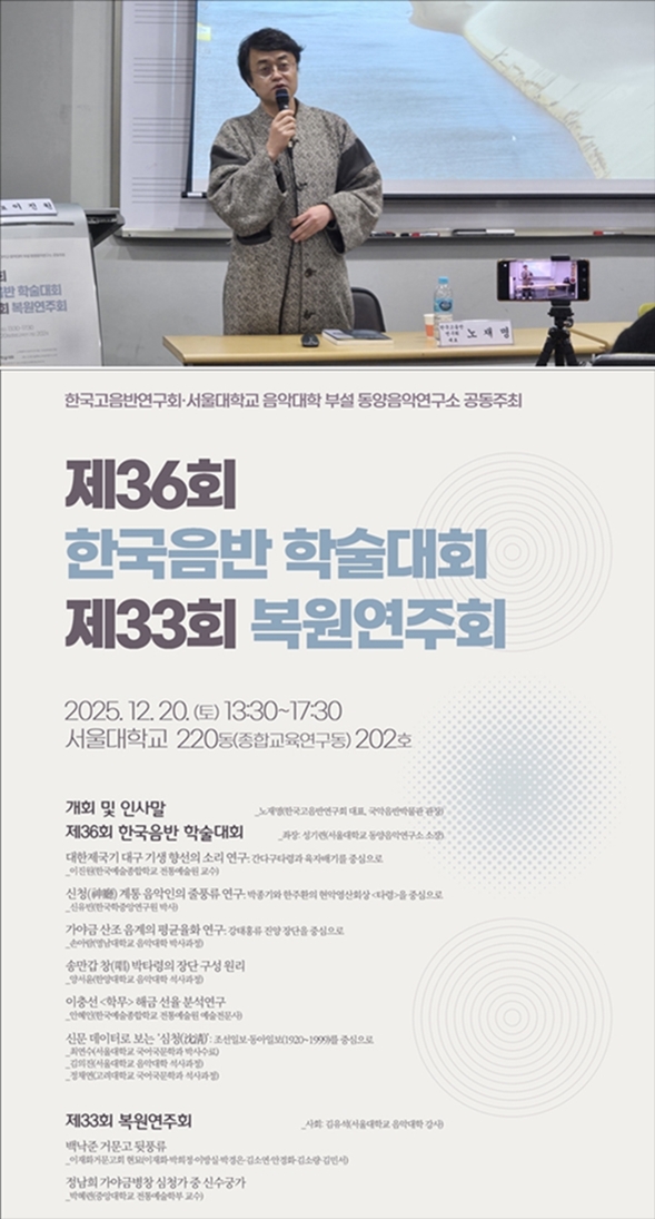 2025³â 12¿ù 20ÀÏ 13:30~17:30 ¼¿ï´ëÇб³ 220µ¿ 202È£¿¡¼ ¿¸° Çѱ¹°íÀ½¹Ý¿¬±¸È¸ ÁÖÃÖ 'Á¦36ȸ Çѱ¹À½¹Ý Çмú´ëȸ¡¤Á¦33ȸ º¹¿ø¿¬ÁÖȸ'¿¡¼